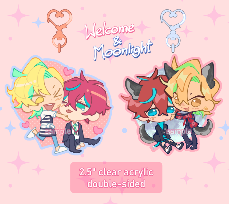 -2.5 inches clear acrylic -double sided -double acrylic board -with heart keychain (welcome: rose gold, moonlight: silver)